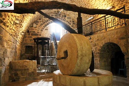 في هذه القاعة شاهدت كل آثار معصرة الزيتون من دولاب حجري ضخم كان يستخدم لعصر الزيتون على قاعدة حجرية دائرية ضخمة، وجذوع الأشجار التي كانت تستخدم من أجل ذلك، وصولا إلى القاعدة الحجرية التي كان يصفى الزيت عليها قبل أن ينحدر باتجاه بئر حجري للزيت، إضافة إلى آلة معدنية لاحقة التاريخ والاستخدام والتي كانت تستخدم لتصفية باقي الزيت بالضغط من بقايا الزيتون، ووضع البقايا "الجفت" في أكياس دائرية خاصة قبل نقلها واستخدامها للوقود في الشتاء وللطوابين والأفران، وعلى الجانب الآخر من القاعة أسست قاعة محاضرات وندوات، وعلى الجدران صور مختلفة للشاعر سميح القاسم، فهل أجمل من ندوة في قاعة تحمل عبق الشعر والثقافة والتاريخ والتراث وحكايات من سبقونا؟