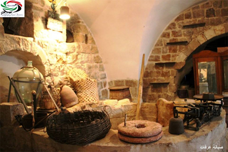 ما إن دخلنا هذا المبنى العريق وهو واحد من حوالي 3000 مبنى تراثي في نابلس، حتى وقفت بصمت وأنا أتأمل المبنى من المدخل حتى الساحة حيث صفت الأبواب والنوافذ الخشبية التراثية للمبنى لإعادة الاستخدام بعد الترميم أو المحافظة عليها ضمن المعروضات، ولفت نظري في الساحة أيضا بعض الأبواب التي جرى تلوينها فأصبحت لوحات فنية جميلة مازجت الفن بالتراث، إضافة إلى الحجر السلطاني الصلب وقسم من هذه الحجارة والأبواب جرى جمعها من البيوت التي تهدمت بفعل الاحتلال وجرافاته خلال اقتحام البلدة القديمة وحاراتها لمطاردة المناضلين في سبيل الحرية، والمبنى قائم على نظام العقود المتصالبة التي اشتهرت بها فلسطين في معظم الأماكن، حيث الأبواب والنوافذ القوسية من الأعلى وهذه الطريقة تجعلها تحتمل الأثقال الكبيرة. وما إن بدأنا الجولة مع أحد الإخوة من المؤسسة حتى بدأت أشاهد مقتنيات قديمة متناثرة منهاجهاز عزف بيانو وآلة خياطة وأجهزة مذياع وحقيبة جلدية قديمة ذكرتني بالمرحومة والدتي التي كانت تمتلك مثل تلك الحقيبة وآلة الخياطة والمذياع القديم الذي يعمل على الكهرباء، والذي نادرا ما كنا نستمع له في طفولتنا لانعدام الكهرباء في معظم البيوت التي سكناها بين الأردن وفلسطين حتى عام 1965، إضافة لمقتنيات تراثية مثل الفخاريات والألبسة التراثية وجواريش الحبوب وغيرها، والأهم أدوات صناعة الصابون النابلسي التراثي قبل عهد المكننة