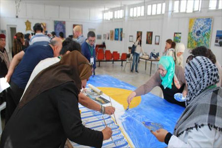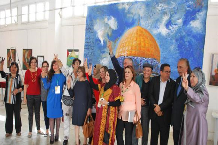 افراسيانت - خميس بن بريك-تونس - في رواق الفنون بمدينة بن عروس في العاصمة تونس اختتمت فعاليات مهرجان فلسطين الدولي الثاني للفن التشكيلي المعاصر بإنجاز لوحة جماعية عملاقة للقدس رسمها ثلة من الفنانين التونسيين، وأهديت إلى سفارة دولة فلسطين في تونس.
