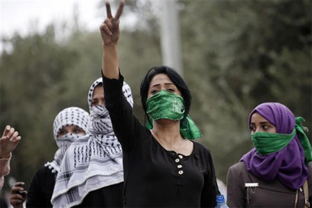 افراسيانت - تطلي الفتيات الفلسطينيات المناضلات في رام الله، أظافرهن بألوان براقة ويرتدين سراويل الجينز الضيقة ويحملن أحدث الهواتف المحمولة في حقائب اليد الأنيقة التي يحملنها، فيما يساعدن في نقل الحجارة إلى الخطوط الأمامية ليلقيها المحتجون على جنود العدو الإسرائيلي.