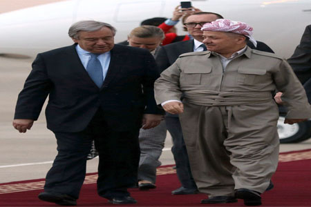 افراسيانت - العرب - أربيل (العراق) - وجد مسعود البارزاني رئيس إقليم كردستان العراق، الفرصة مواتية في لقائه بأنطونيو غوتيريس، الأمين العام للأمم المتحدة، ليعلن أن الإقليم سيجري استفتاء على الاستقلال قريبا في خطوة هادفة إلى تحويل الانفصال إلى أمر واقع وبحضور أممي.