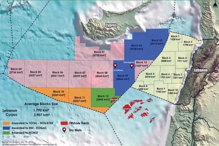 وفي يناير/كانون الثاني الماضي أطلقت الحكومة اللبنانية أول جولة تراخيص للنفط والغاز، بعدما تقرر فتح 5 بلوكات بحرية، وهي 1 و4 و8 و9 و10، للمنافسة أمام المستثمرين بطريقة المناقصة لتقديم عروضهم، ولمدة خمس سنوات قابلة للتجديد.