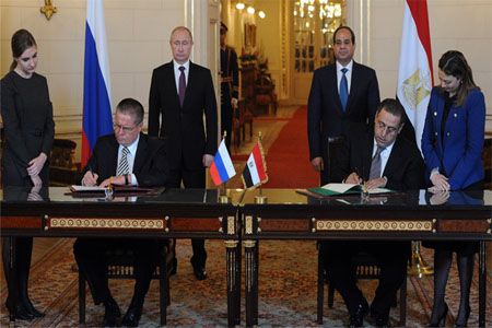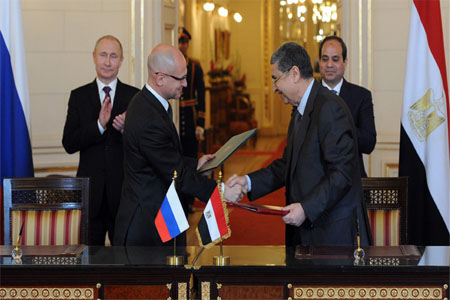 افراسيانت - وقعت روسيا ومصر الثلاثاء 10 فبراير /شباط على هامش زيارة الرئيس الروسي فلاديمير بوتين إلى القاهرة ثلاث اتفاقيات ثنائية أبرزها كانت اتفاقية لإنشاء محطة كهروذرية في مصر.