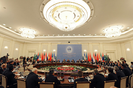 وجاء في بيان طشقند الذي اتخذ في ختام قمة المنظمة في العاصمة الأوزبيكية، أن الاقتصاد العالمي يصطدم بآثار الأزمة المالية والاقتصادية الشاملة، الأمر الذي أدى إلى انخفاض في الطلب الكلي، وتقلبات حادة بأسعار في أسواق السلع والمواد الخام الأساسية، وتباطؤ النمو الاقتصادي في العالم وغيرها من العواقب السلبية.