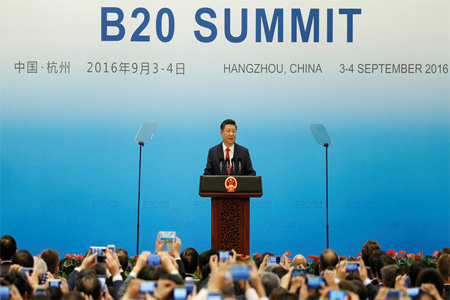 وقال الرئيس الصيني شي جين بينغ يوم السبت خلال افتتاح قمة الأعمال الخاصة بمجموعة العشرين، والتي تنعقد قبل انطلاق قمة الزعماء، بمشاركة رؤساء أبرز الشركات والهيئات الاقتصادية من الدول المعنية: "إنني واثق من أنه على دول مجموعة العشرين أن تنضم إلى أعضاء المجتمع الدولي الآخرين والشروع في العمل فورا من أجل توفير بيئة دولية سلمية ومستقرة".