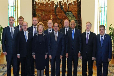 من جانبها، قالت ماتفيينكو خلال لقائها السيسي:" العلاقات الروسية المصرية ذات طابع غني ومتنوع.. مصر تسعى لمواصلة تطوير العلاقات مع روسيا في مجالات مختلفة، وخصوصا في مجال البرلمان، الذي يعتبر أحد أهم عناصر التقرب بين البلدين على مستوى الحكومة والشعب".