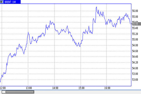 وبحلول الساعة 16:04 بتوقيت موسكو ارتفع سعر مزيج برنت 1.46 دولار إلى 55.62 دولارا للبرميل بعد نزوله أكثر من دولار في وقت سابق، وبعد أن هبط سعر الخام في العقود الآجلة بنسبة 5.5% عند التسوية يوم الأربعاء.