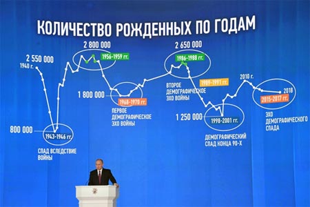 روسيا تمكنت من إحداث تغيير جذري فيما يخص الوضع الديموغرافي، ومتوسط العمر في روسيا يجب أن يصل إلى أكثر من 80 عاما مع نهاية العشرينيات من القرن الـ 21.