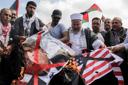 على مقربة منه، تستمر الهتافات، ومنها ما يعبر عن سخط وخيبة أمل من الموقف العربي الباهت إزاء التطورات.