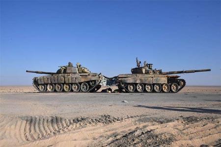 ونشرت قناة Directorate 4 صورا زعم "داعش" أنها تظهر لحظة تدمير مسلحيه دبابة "تي-72" تابعة للجيش السوري قرب بلدة أبو كحف في ريف حماة الشمالي، مرجحة مقتل طاقم الدبابة المستهدفة.