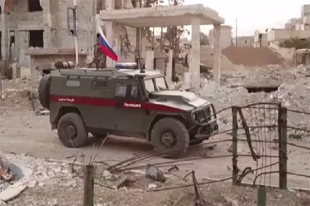 افراسيانت - نظمت الشرطة العسكرية الروسية دوريات على مدار الساعة في أحياء وشوارع بلدات يلدا وبيت سحم وببيلا جنوب دمشق لحفظ الأمن والاستقرار وعودة الحياة إلى طبيعتها بعد تحريرها من المسلحين.