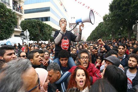 افراسيانت - قرّر عدد من الأحزاب والمنظمات والجمعيات، النزول إلى الشارع في مسيرة وطنية مشتركة تحت شعار "تونس تستعيد ثورتها"، وذلك يوم الأحد القادم، بالتزامن مع الذكرى السابعة لسقوط نظام زين العابدين بن علي، في خطوة تصعيدية تهدف إلى توسيع دائرة الإحتجاجات، والضغط على الحكومة للتراجع عن قانون المالية.