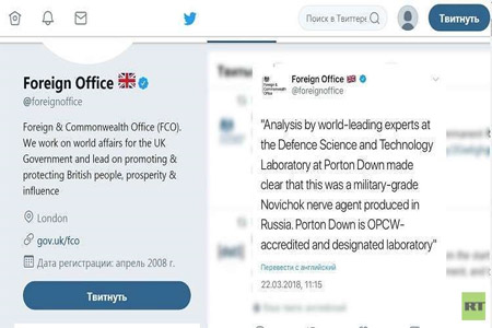 وطرح المكتب الصحفي التابع للسفارة الروسية لدى لندن، تساؤلا في هذا الصدد: "لماذا حذفت الخارجية البريطانية، هذه التغريدة المنشورة بتاريخ 22 مارس"؟