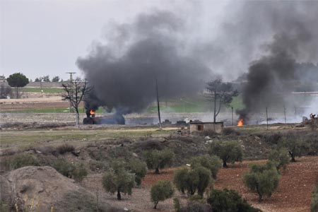 ميدانياً، أعلنت وحدات حماية الشعب الكردية أنها استهدفت مدرّعة عسكرية تركية على الطريق الواصل ما بين قريتي جما واومرا في ناحية شرا في منطقة عفرين.