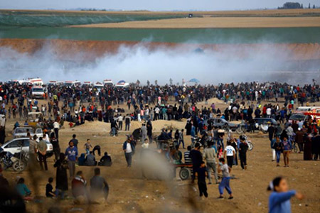 غزة - افراسيانت - استشهد شاب وأصيب نحو ألف آخرين في الجمعة الثالثة من مسيرات العودة الكبرى التي حملت اسم "جمعة رفع العلم" وخلال المواجهات التي اندلعت مع قوات الاحتلال عند حدود قطاع غزة.