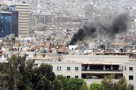 وذكر مصدر آخر في الشرطة أن مجموعات مسلحة اعتدت بقذيفة على منطقة المزة في محيط مدينة الجلاء الرياضية ما أسفر عن إصابة 8 أشخاص.
