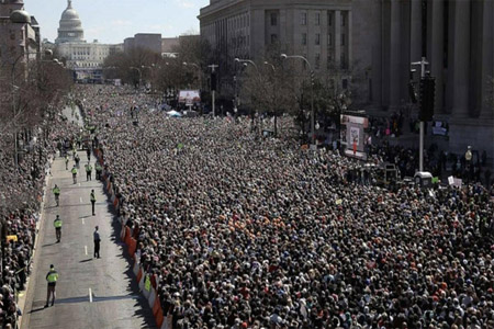 وتجمع محتجون في بنسلفانيا أفنيو بواشنطن في الوقت الذي دعا فيه طلاب من مدرسة باركلاند الثانوية بولاية فلوريدا ، حيث قُتل 17 من الطلاب والمعلمين في الحادث الذي وقع في 14 فبراير شباط، أعضاء الكونجرس والرئيس دونالد ترمب إلى التصدي لهذه القضية.وتهدف الاحتجاجات إلى إنهاء مأزق تشريعي يعرقل منذ وقت طويل تشديد القيود المفروضة على بيع الأسلحة في بلد صارت فيه حوادث إطلاق النار العشوائي شائعة ومتكررة الحدوث في المدارس والجامعات.