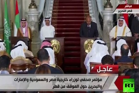 افراسيانت - قال سامح شكري وزير الخارجية المصري في بيان وزراء خارجية مقاطعة قطر، الأربعاء، لم نعد نستطيع التسامح مع الدور القطري والمقاطعة جاءت لمخالفة الدوحة للاتفاقيات الموقعة.