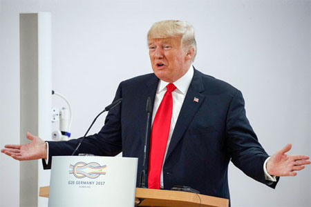 ويقوّض ترامب نفسه بادعائه بأنه حامي القيم الغربية وبهجماته ضد حرية الصحافة وتقليله من أهمية التدخل الروسي في الانتخابات. وفي قمة مجموعة العشرين في هامبورغ ظهر ترامب مجددا خارج الإطار السياسي. ففي البيان المشترك بدت الولايات المتحدة خارج تجمع القادة العالميين: ففي المعركة ضد التغير المناخي أيدت 19 دولة الاتفاق ووحده ترامب عارضه.