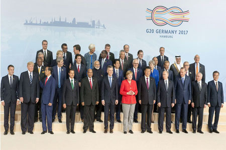 افراسيانت - حاول الرئيس الأميركي دونالد ترامب أن يفرض برنامجه الاقتصادي والسياسي في قمة دول العشرين المنعقدة مؤخرا بمدينة هامبورغ الألمانية. وسعى إلى تلطيف حدة الأجواء مع الحلفاء الأوروبيين بسبب توجهه الانعزالي ورفعه شعار “أميركا أولا”. غير أنّ محاولاته باءت بالفشل بسبب إجماع قادة الدول على تطبيق اتفاق باريس حول المناخ ليبقى صوت الولايات المتحدة وحيدا لأول مرة منذ انتخابه رئيسا.