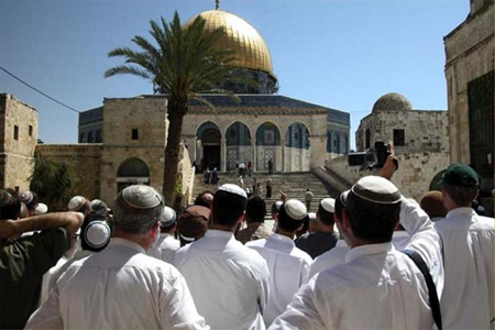 القدس - افراسيانت - للمرة الأولى بعد عملية القدس التي قتل فيها شرطيان اسرائيليان، يوم الجمعة الماضي اقتحمت مجموعات من المستوطنين المتطرفين باحات المسجد الأقصى المبارك من جهة باب المغاربة، بحراسة عناصر من الشرطة الاسرائيلية بأعداد كبيرة رافقتهم وأحاطت بهم خلال تجوالهم في ساحات المسجد في ظل غياب الحراس الذين كانوا دائما يحيطون بهم لمراقبتهم والتصدي لهم في حال أدوا طقوس توراتية.