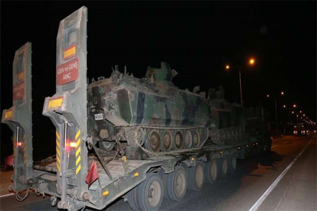 وأشار مراسل "الأناضول" في ولاية هطاي إلى أن العربات والمدرعات العسكرية وناقلات الجنود ووحدات الكوماندوز التركية القادمة من ولايات مختلفة في تركيا تمركزت، اليوم السبت، على الشريط الحدودي في ريحانلي.