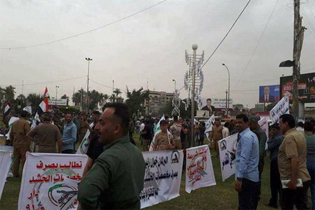 افراسيانت - خرج العشرات من عناصر ميليشيات الحشد_الشعبي بمظاهرات أمام باب منطقة الخضراء ضمن المجمع الحكومي، وذلك لتقديم عدد من المطالب.