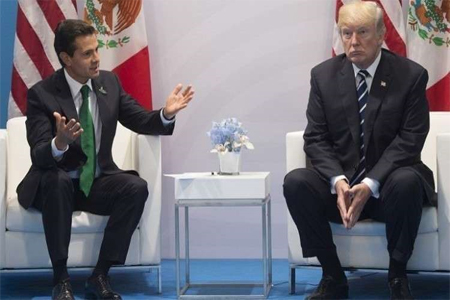 افراسيانت - تراشق الرئيس الأمريكي دونالد ترامب، مع نظيره المكسيكي إنريكي بينيا نييتو، باتهامات متبادلة يوم أمس، وانتقد ترامب، المكسيك لتقاعسها في مساعدة بلاده في وقف الهجرة غير الشرعية.