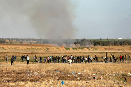 من جانب اخر اطلق المتظاهرون طائرات ورقية محملة بكتل ملتهبة في المنطقة الحدودية ما تسبب باشتعال نيران في حقول تتبع المستوطنات الاسرائيلية المقامة قرب المحافظة الوسطى وخانيونس.