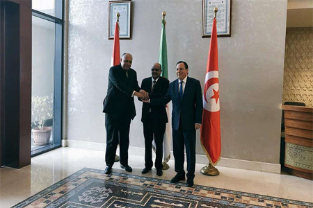 افراسيانت - حذر وزراء خارجية الجزائر وتونس ومصر، خلال اجتماع ثلاثي حول ليبيا، من أن التأخير في التوصل إلى حل للأزمة سيفسح المجال أمام مزيد من التصعيد وانتشار العنف والإرهاب واتساع الصراعات.