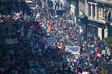 وشهدت مدن جنوبية مثل تولوز وبوردو تظاهرات أصغر حجما، في حين بدأت التظاهرة الحاشدة في باريس على شكل نزهة في الطبيعة بمشاركة عائلات.