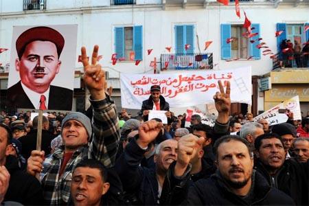 تونس - افراسيانت - تبادل أنصار حزب حركة النهضة الاسلامية وأحزاب اليسار في تونس، الاتهامات في شارع الحبيب بورقيبة بمناسبة الاحتفاء بذكرى الثورة.