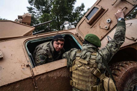 وأرسلت تركيا السبت الماضي جنودا ودبابات إلى شمال سوريا في إطار عملية اطلقت عليها اسم "غصن الزيتون" وتستهدف مقاتلي وحدات حماية الشعب الكردية التي تعتبرها أنقرة "إرهابية".