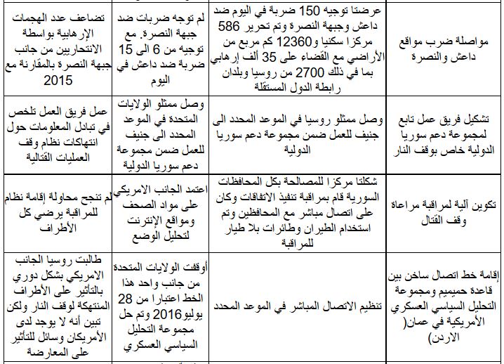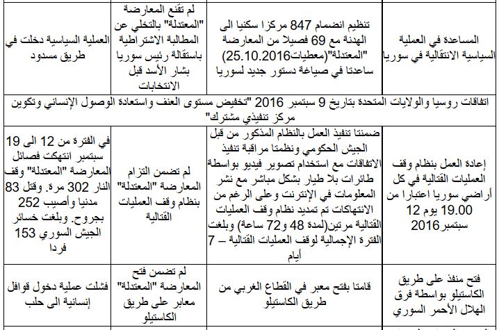 وفيما يلي التحليل على شكل جدول كما قدمه موقع وزارة الخارجية الروسية: