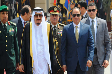 وأغدق الملك سلمان العطايا على مصر، وجدد دعم الرياض الاقتصادي للقاهرة بتوقيع حزمة اتفاقات تصل قيمتها إلى 25 مليار دولار؛ إضافة إلى عقد لتزويد مصر بالمشتقات النفطية لمدة خمسة أعوام بقيمة 23 مليار دولار. وفي المقابل أنهى خلافا حدوديا حول ترسيم الحدود والسيادة على جزيرتي تيران وصنافير لمصلحة بلاده، ما أثار ردود أفعال متباينة في مصر.
