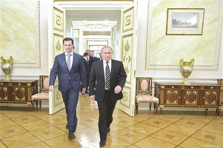 موسكو تنسق إقليمياً بشأن خطة للحل السوري وتبلورها غداً في جنيف .. بوتين والأسد: «تسييس» حتمي لـ«عاصفة السوخوي»