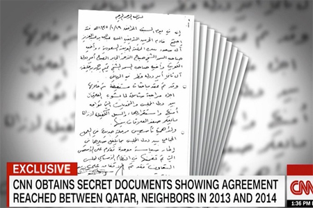 افراسيانت - نشرت شبكة "CNN" الأمريكية الإخبارية، وثائق "سرية للغاية" تخص اتفاقيتين بين دول مجلس التعاون الخليجي، وقعت عليهما قطر، عامي 2013 و2014، ولم تلتزم بهما، وفق اتهامات خليجية.