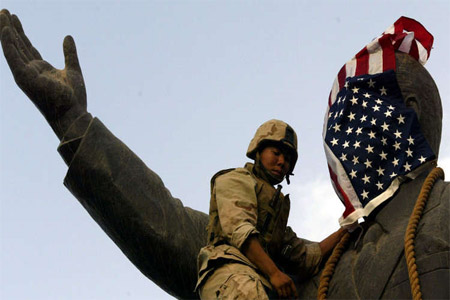 المفارقة أن الجنود الأمريكيين تمكنوا بسهولة من تدمير تمثال صدام حسين وسط بغداد، لكن الإمبراطورية الأمريكية بكل شعاراتها البراقة وادعاءاتها المدعومة بجبروت القوة الغاشمة، لم تتمكن طيلة سيطرتها المباشرة على العراق من كتابة حتى مجرد سطر واحد مضيء في تاريخ بلاد الرافدين الجديد.