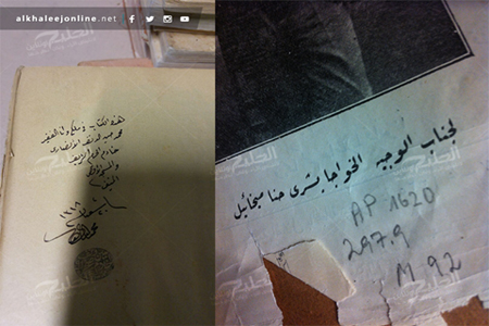 كما توجد كتب تعود ملكيتها للشيخ المقرب من المجاهد عز الدين القسام، "محمد نمر الخطيب"، الذي كانت عائلته تمسك بزمام أمور الإفتاء في حيفا حتى نكبة 1948، حين حاولت العصابات الصهيونية اغتياله واستولت على مكتبته الشخصية وأرسلت محتوياتها لأرشيف المكتبة الوطنية الإسرائيلية.