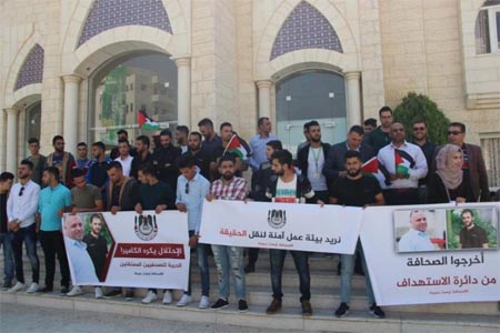 وجاء الاعتصام الذي نظم في حرم جامعة الخليل تلبية لدعوه من نادي الاعلاميين في الجامعة.