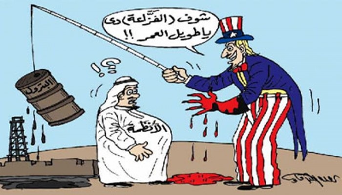 ويقول إن عددًا من الدول تعاون الولايات المتحدة في تنفيذ مخططاتها، وفقًا للمصالح الخاصة بكل دولة، وحتى تضمن بقاء أمريكا وحمايتها لها، كأكبر كقوة عظمى مسيطرة في العالم.