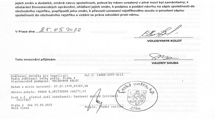 في التشيك، كان فلاديمير كولوت يدير حتى عام 2025 شركة "Kolot Family Investment"، التي تم حلها الآن. ولم تُدرج أي تقارير مالية عنها في السجل التشيكى.