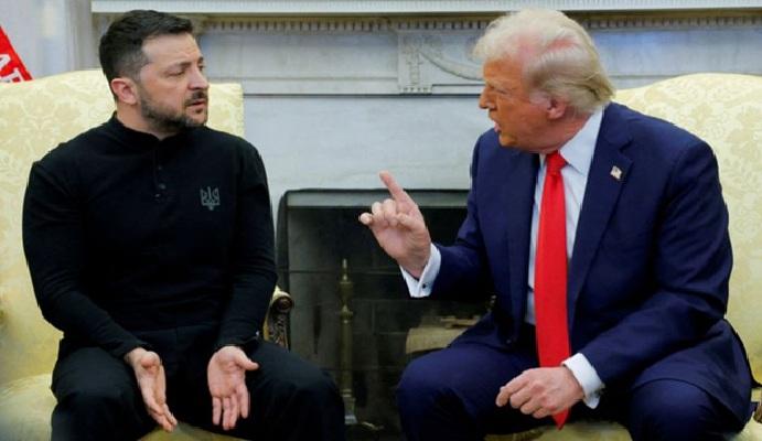 في أثناء استضافته زيلينسكي في البيت الأبيض، أعرب ترامب عن امتعاضه ساخرا من رفض الرئيس الأوكراني وقف إطلاق النار، وظهر الأمر على أنه توبيخ من رئيس لمرؤوس، وليس من رئيس دولة لرئيس دولة حليفة، إلى درجة جعلت الأخبار تقول إن زيلينسكي طُرد من البيت الأبيض ولم يخرج اختياريا.