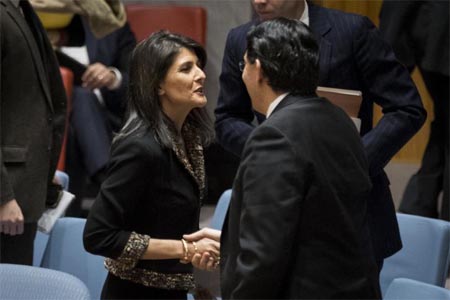 وصوت لصالح مشروع القرار 14 دولة، لكن واشنطن افشلته ولم يتم تبنيه بسبب معارضتها مشروع القرار الذي تقدمت به مصر ضد قرار ترامب الاعتراف بالقدس عاصمة لاسرائيل.