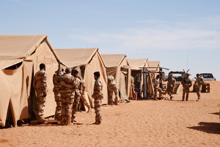 وسط الصحراء مترامية الأطراف، في أقصى شمال النيجر، يظهر صف من الخيام وعدد من الآلات، و200 عسكري يعملون بهمة ونشاط على بناء قاعدة عسكرية على أبواب ليبيا.