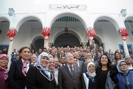 إلى ذلك عقد مجلس نواب الشعب، (البرلمان التونسي الجديد) يوم 2 ديسمبر/كانون الأول أولى جلساته، لينتخب في جلسته الثانية المنعقدة بعد يومين مرشح حزب "نداء تونس" محمد الناصر رئيسا له بغالبية الأصوات، وذلك بعد اتفاق مع حركة النهضة أفضى إلى انتخاب نائب رئيس النهضة الإسلامية عبد الفتاح مورو نائبا أول، بينما حصلت المرشحة عن حزب الاتحاد الوطني الحر فوزية بن فضة على منصب النائب الثاني لرئيس مجلس الشعب بعد حصولها على 150 صوتا.