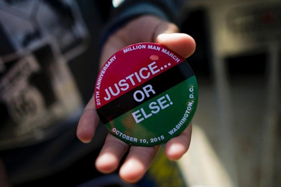 الذكرى العشرون لـ"مليون رجل" لوحت بشعار "العدالة وإلا فلا .." لتظهر نفاد صبر الأفارقة الأمريكيين تجاه المعاملة المختلفة والعنصرية التي تعرضوا لها منذ عقود مع تأسيس الولايات المتحدة وحتى اليوم.