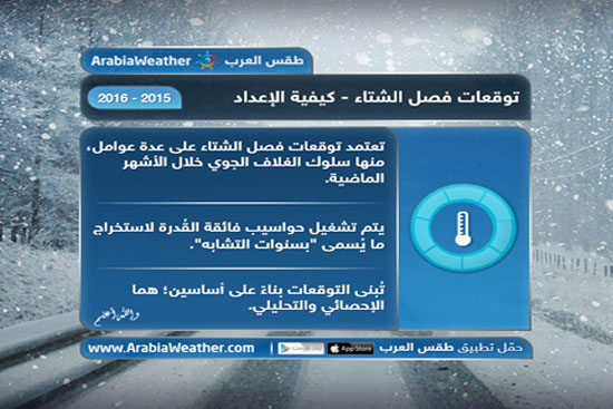 وتعتمد توقعات فصل الشتاء على عدّة عوامل من ضمنها سلوك الغلاف الجوي للكُرة الأرضية خلال الأشهر الماضية إضافة إلى تشغيل حواسيب فائقة القُدرة لاستخراج ما يُسمّى بسنوات التشابُه، وتُبنى بعدها التوقعات على أساسين هما الإحصائي والتحليلي.