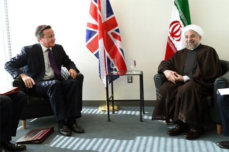 ولم يخفِ رئيس الوزراء البريطاني خلال لقائه مع الرئيس الإيراني حسن روحاني في 24 سبتمبر/أيلول بنيويورك وجود "خلافات كبيرة" مع إيران تتعلق أساسا بملف طهران النووي، لكنه أشار في الوقت ذاته إلى ضرورة منح إيران فرصة كي تظهر أنها قادرة على أن تساهم في حل الأزمة السورية ومكافحة الإرهاب.