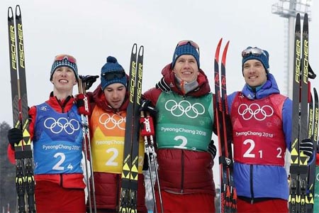 افراسيانت - أحرز فريق التتابع الروسي للرجال الميدالية الفضية في سباق 4×10 كم في التزلج للمسافات الطويلة اليوم الأحد، ضمن دورة الألعاب الأولمبية الشتوية التي تستضيفها كوريا الجنوبية.